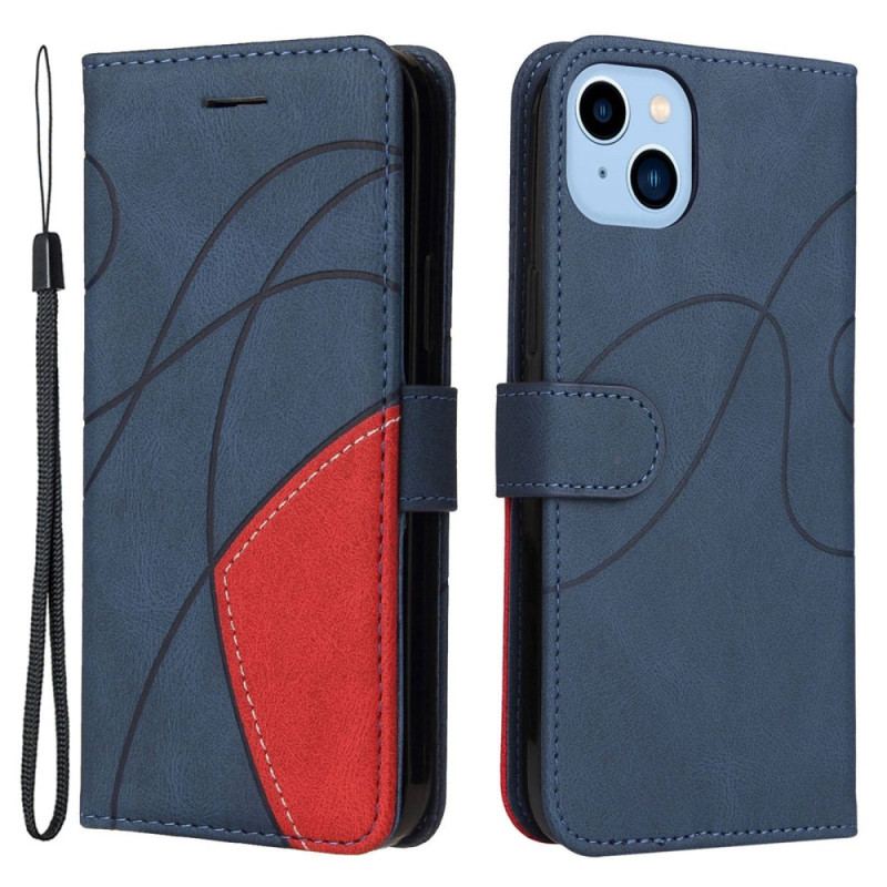 Flip Cover iPhone 14 Plus Tofarvet Signatur Imiteret Læder