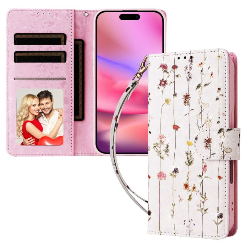 Flip Cover iPhone 16 Blomster Rfid-blokeringsteknologi