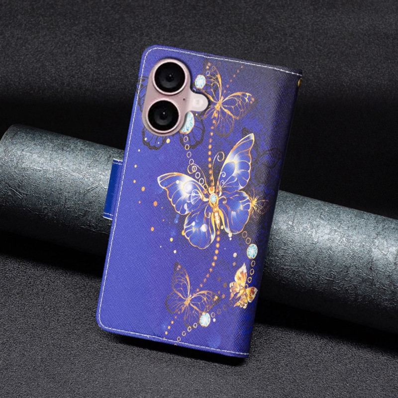 Flip Cover iPhone 16 Lilla Sommerfugle Tegnebog