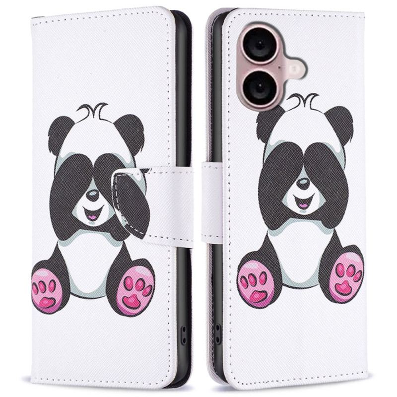 Dette Flip-Cover Til Iphone 16 Plus, Dekoreret Med Et Panda-Motiv, Er Ikke Kun Æstetisk, Men Også Praktisk.