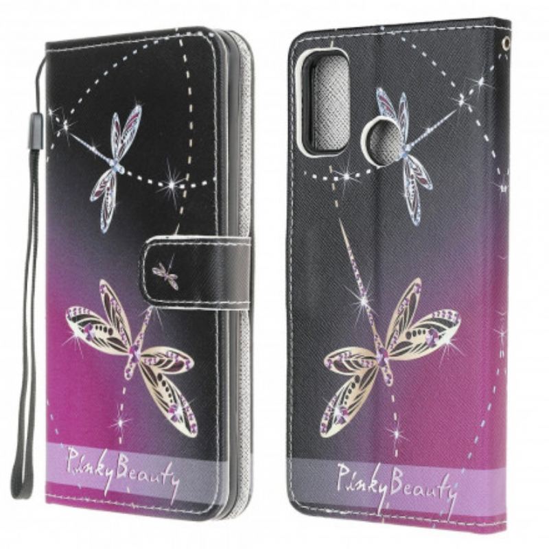 Beskyt Din Moto G30 / Moto G10 På En Personlig Måde Med Dette Dragonflies Lanyard Cover, Der Også Fungerer Som En Pung.