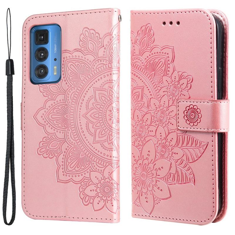 Et Storslået Etui Til Motorola Edge 20 Pro Med Et Mandala-Design Af En Sun, Der Også Fungerer Som Pung Og Stativ.