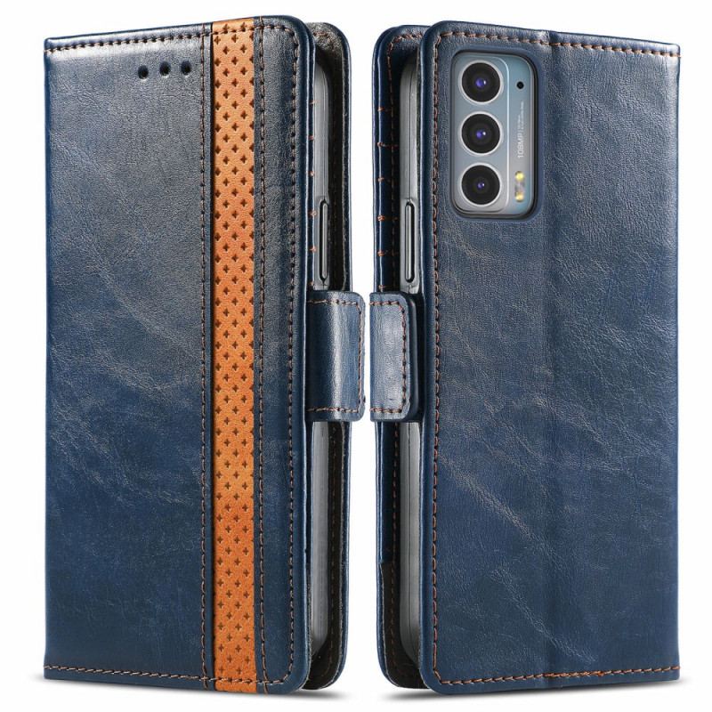 Det Tofarvede Etui I Imiteret Læder Til Din Motorola Edge 20 Kommer Med Beskyttelse, Kortpladser Og En Dobbeltlås.