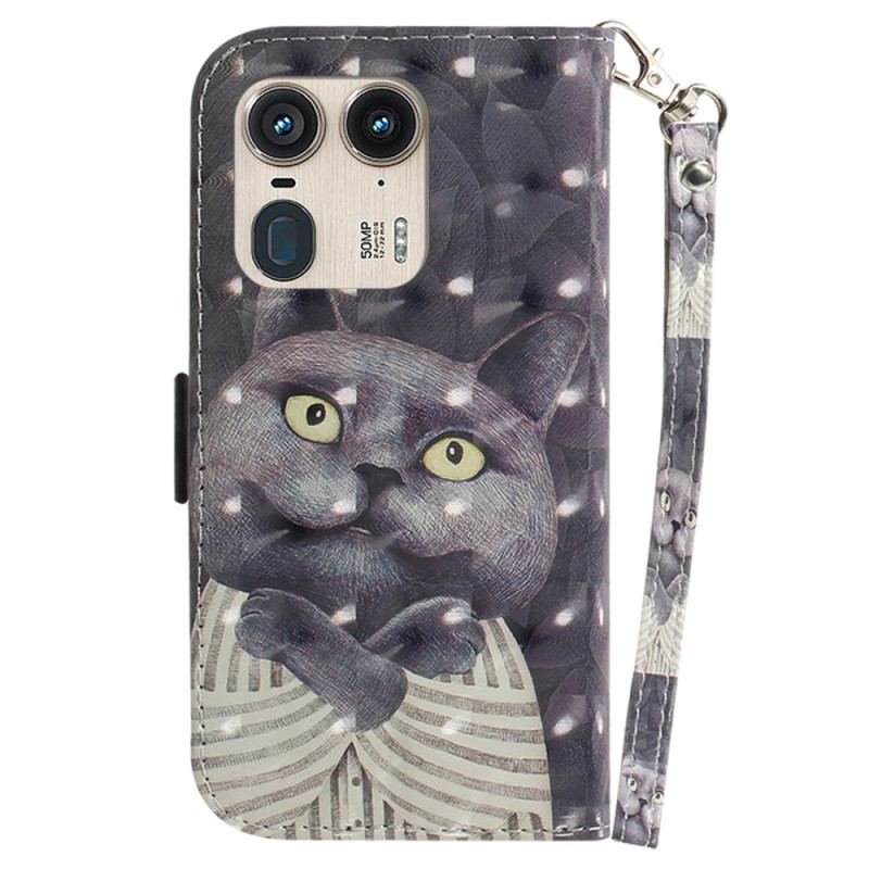 Flip Cover Motorola Edge 50 Ultra Grå Kat Med Rem