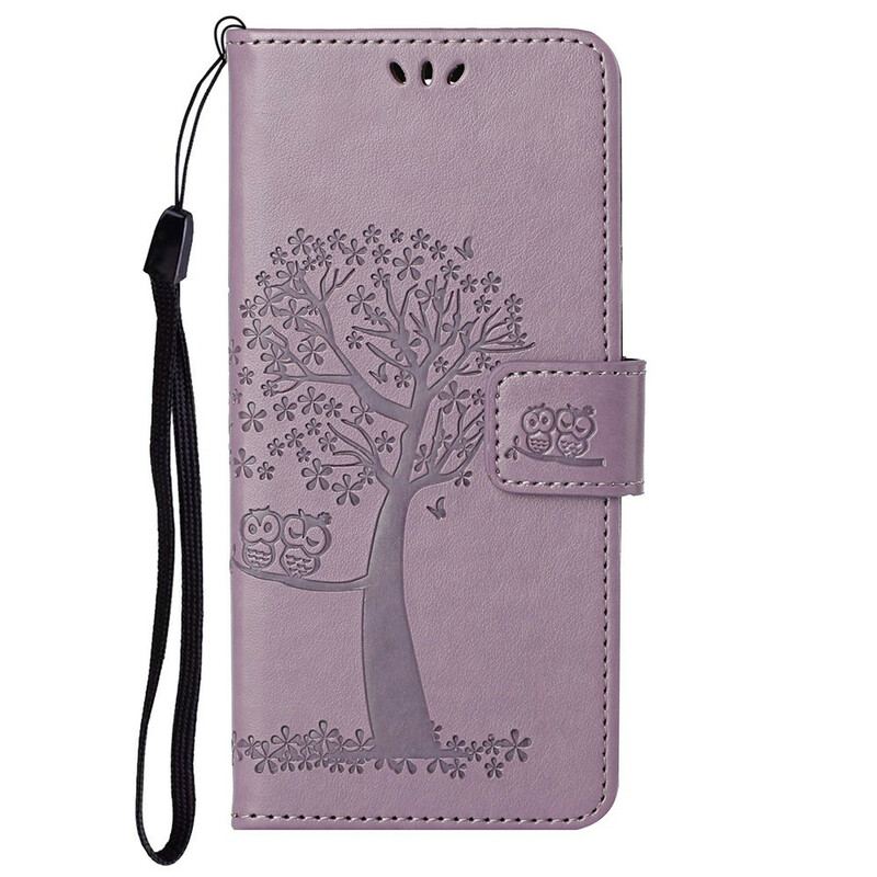 Flip Cover OnePlus Nord 2 5G Med Snor Thong Træ Og Ugler