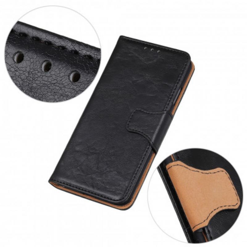 Beskyt Din Oppo A54 5G / A74 5G Usædvanligt Godt Med Dette Splitlædercover Udstyret Med Dens Meget Praktiske Og Stilfulde Vendbare Lås.