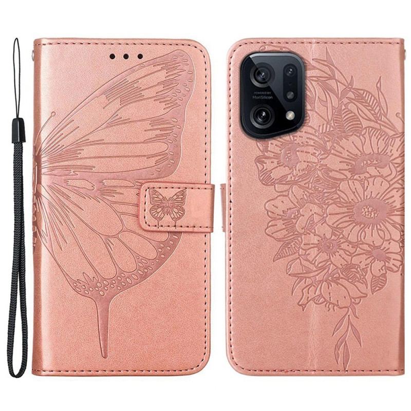 Flip Cover Oppo Find X5 Sommerfugledesign Med Snor