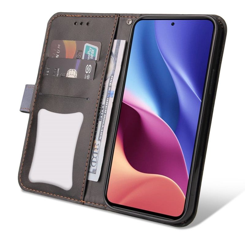 Tofarvet Imiteret Lædercover Er Ideelt Til At Beskytte Din Poco F3 / Xiaomi Mi 11I 5G På En Optimal Og Multifunktionel Måde.