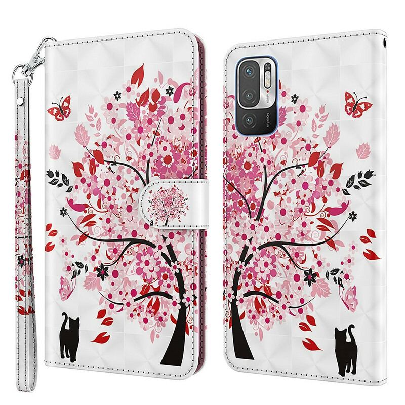 Pink Tree-Coveret Med Sin Søde Kat Sikrer Perfekt Xiaomi Redmi Note 10 5G / Poco M3 Pro 5G, Mens Det Fungerer Som Pungtilbehør.