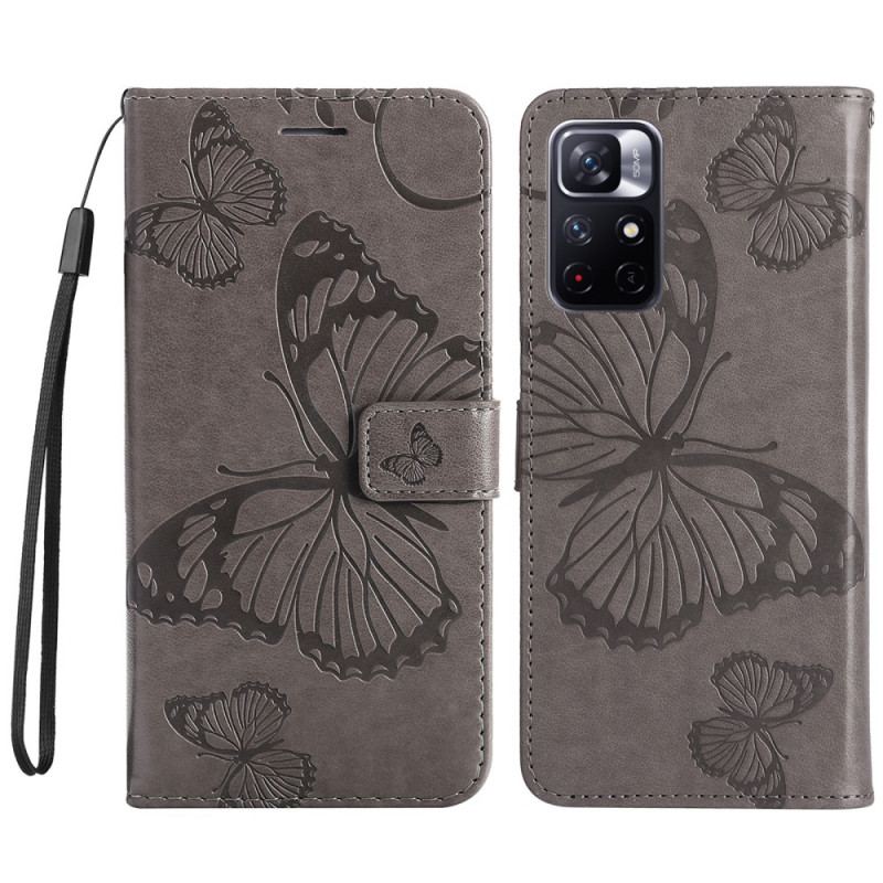 Flip Cover Poco M4 Pro 5G Med Snor Kæmpe Sommerfugle Med Rem