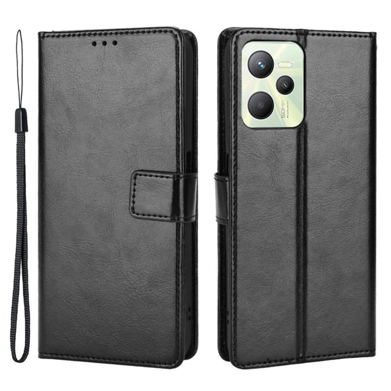 Beskyt Din Realme C35 Mod Stød Og Støv Med Dette Klassiske Prangende Silikone- Og Imiteret Lædercover.