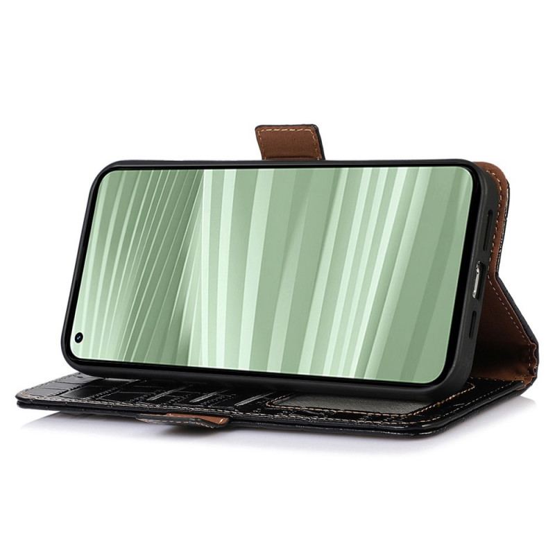 Beskyt Din Realme Gt2 Pro Og Dine Kort Med Dette Ægte Krokodillelæderetui Med Rfid-Funktion.