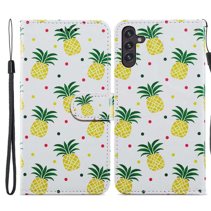 Få Mest Muligt Ud Af Din Samsung Galaxy A13 5G / A04S Med Dette Imiteret Lædercover Dekoreret Med Flere Ananas.