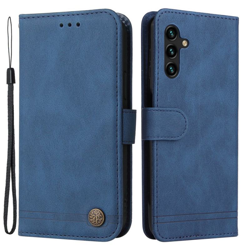 Flip Cover Samsung Galaxy A13 5G / A04s Imiteret Læder Nitte Og Rem