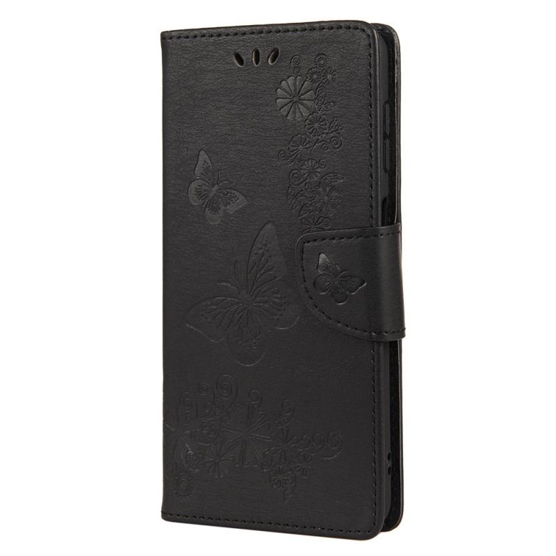 Flip Cover Samsung Galaxy A13 5G / A04s Med Snor Pragtfulde Stropsommerfugle