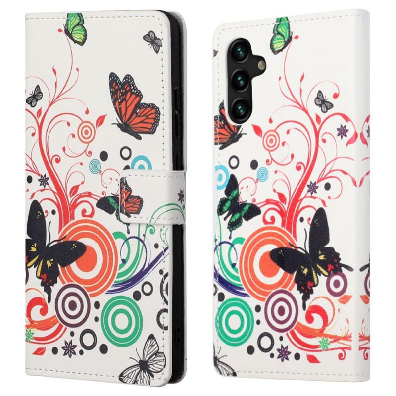 Flip Cover Samsung Galaxy A13 5G / A04s Sommerfugle Og Blomster