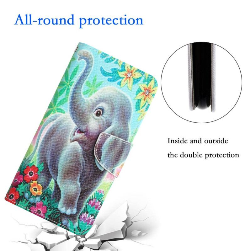 Flip Cover Samsung Galaxy A14 / A14 5G Med Snor Munter Elefant Med Snor
