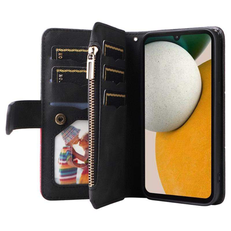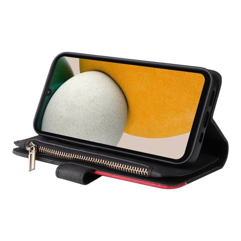 Tjek Vores Pungcover Til Samsung Galaxy A15 5G, Som Tilbyder Dobbeltlagsbeskyttelse Og Et Moderigtigt Tofarvet Design Med Uregelmæssige Linjer Printet.