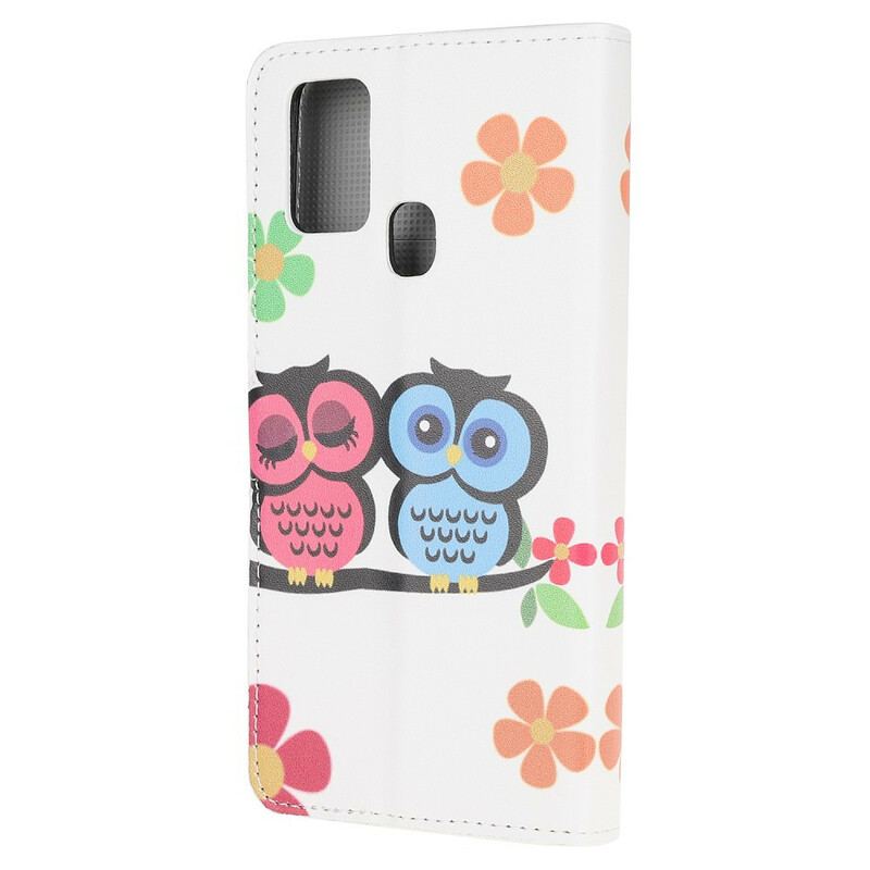 Et Legende Og Farverigt Cover, Der Repræsenterer En Familie Af Ugler Til Din Samsung Galaxy A21S.