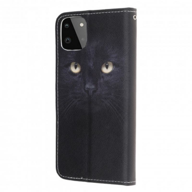 Flip Cover Samsung Galaxy A22 5G Med Snor Strappy Black Cat Eyes