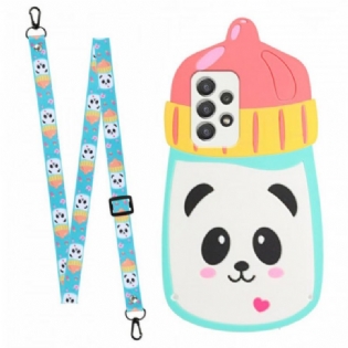 Flip Cover Samsung Galaxy A22 Med Snor Strappy Black Cat Eyes