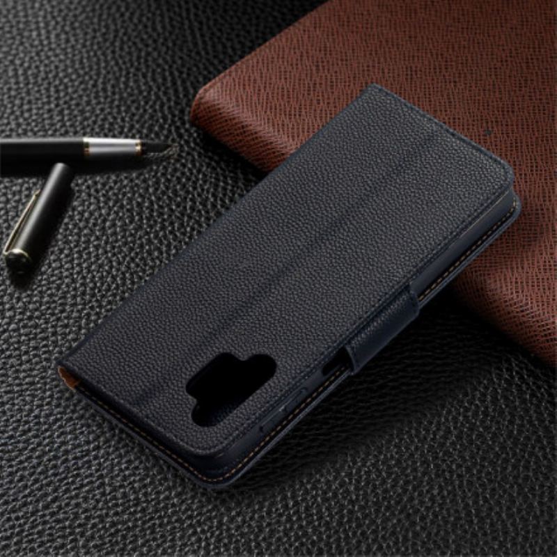 Det Skrå Klap I Litchi Imiteret Læder Etui Er Den Ideelle Beskyttelse Til Din Samsung Galaxy A32 5G.