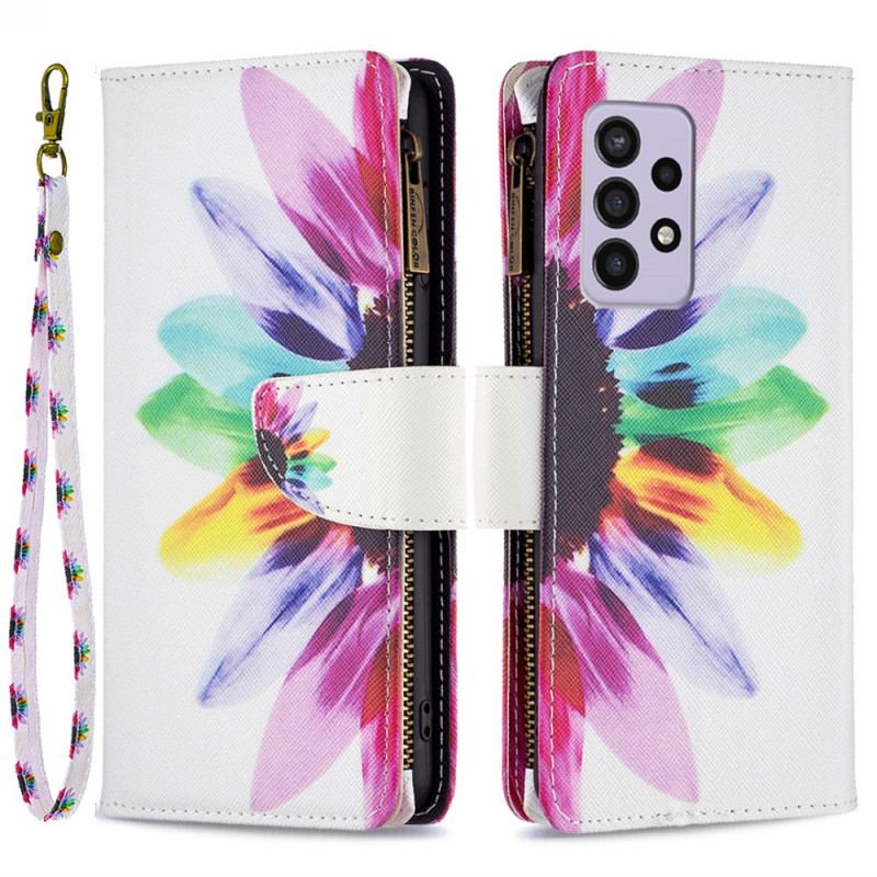 Flip Cover Samsung Galaxy A33 5G Blomsterlomme Med Lynlås