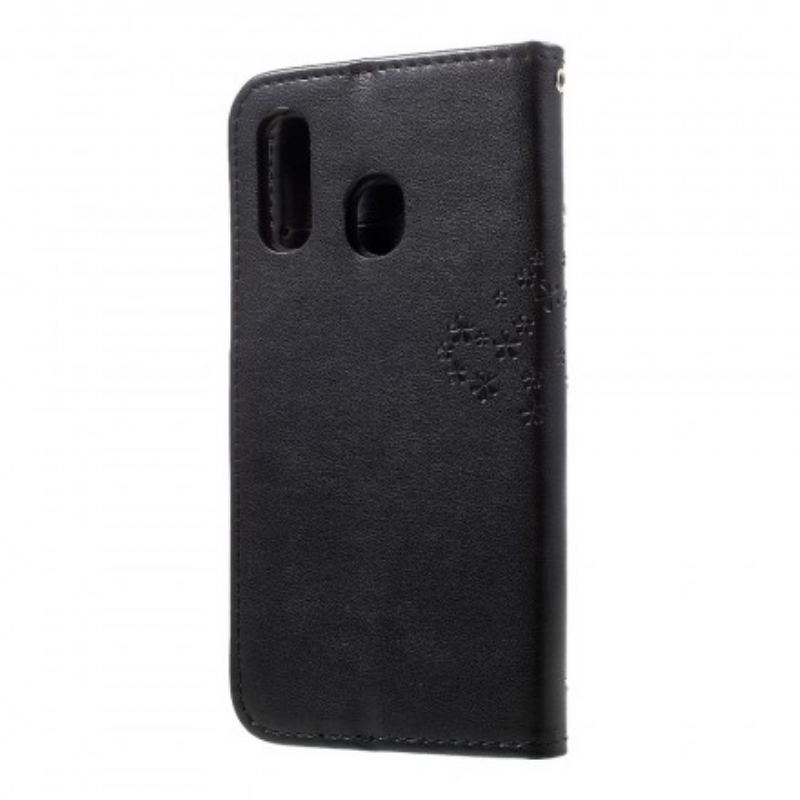 Flip Cover Samsung Galaxy A40 Med Snor Thong Træ Og Ugler