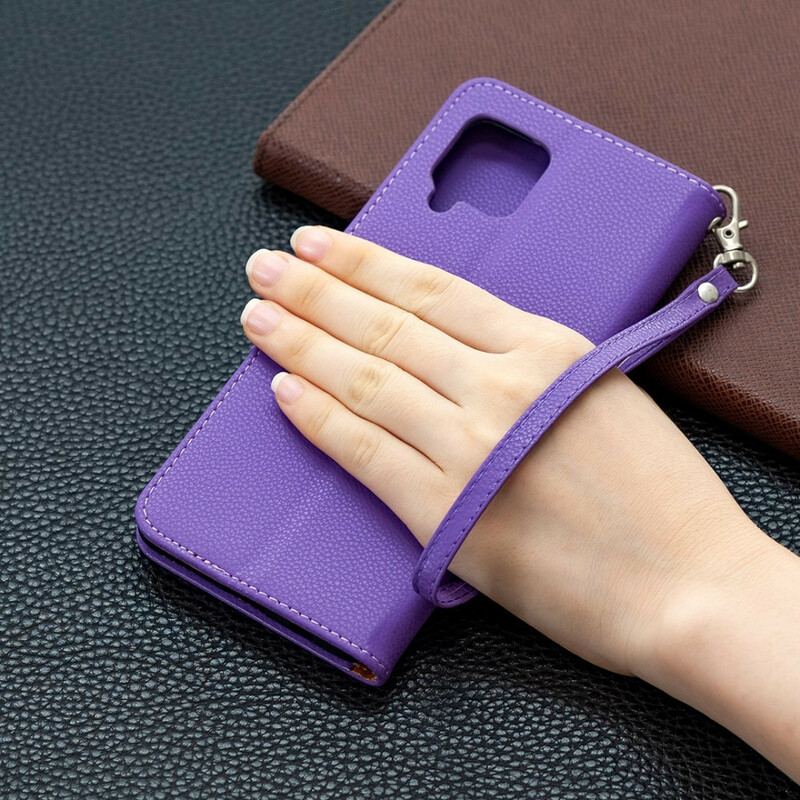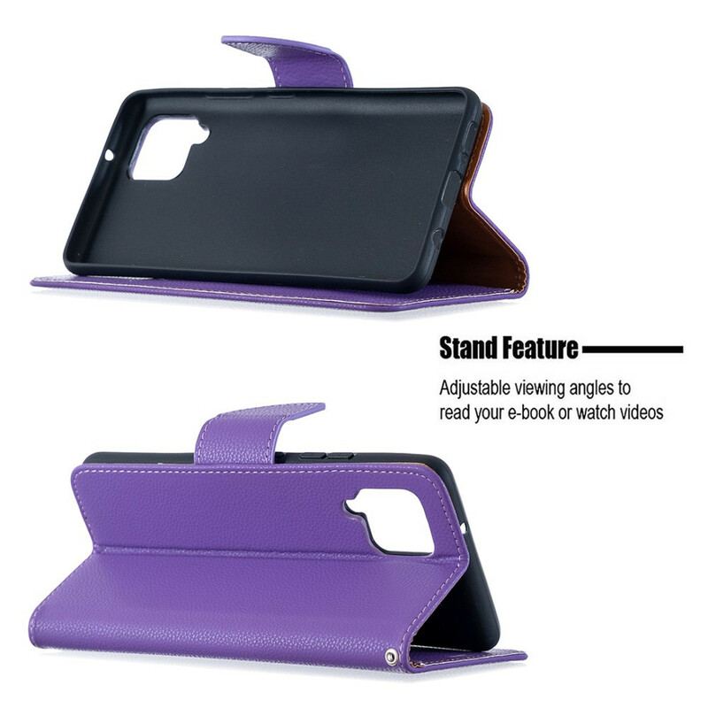 Det Skrå Klap I Litchi Imiteret Læder Etui Er Den Ideelle Beskyttelse Til Din Samsung Galaxy A42 5G.