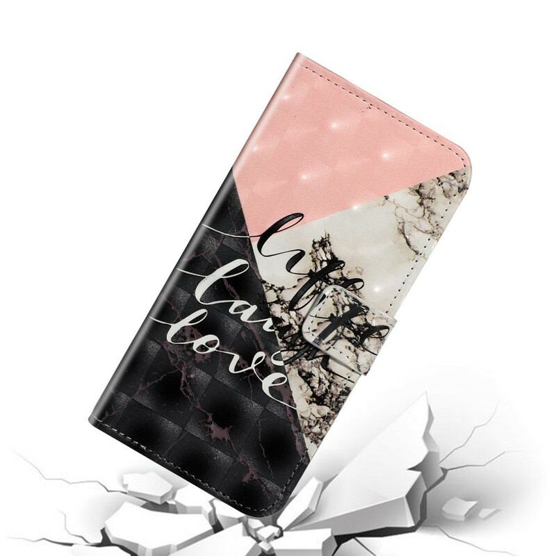Live Laugh Love Etui I Marmorstil Beskytter Perfekt Din Samsung Galaxy A51. Mens Det Fungerer Som Pung Og Håndfrit Stativ.