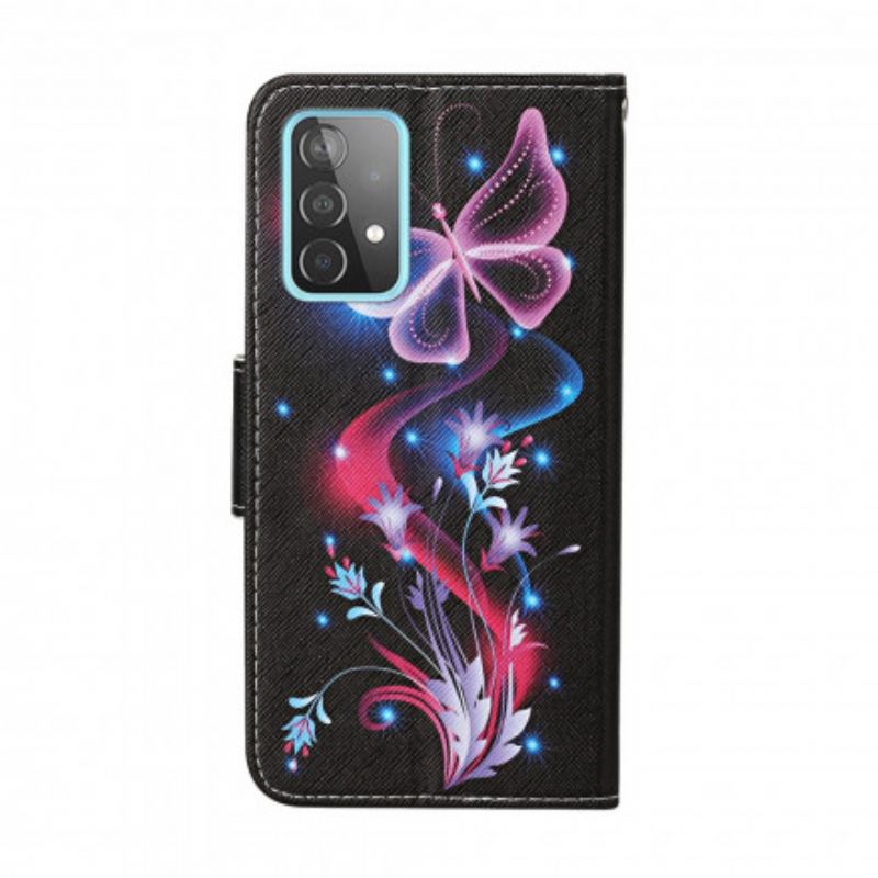 Flip Cover Samsung Galaxy A52 4G / A52 5G / A52s 5G Sommerfugle Og Snor