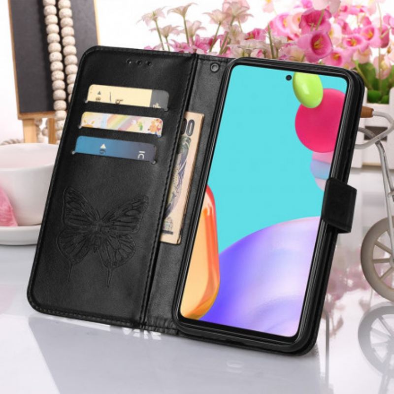 Flip Cover Samsung Galaxy A52 4G / A52 5G / A52s 5G Sommerfugledesign Med Snor