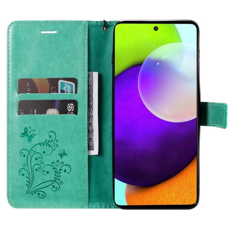 Dette Cover I Imiteret Læder Dekoreret Med Gigantiske Sommerfugle, Som Kommer Med En Rem, Er Ideel Til At Transportere Samsung Galaxy A53 5G.