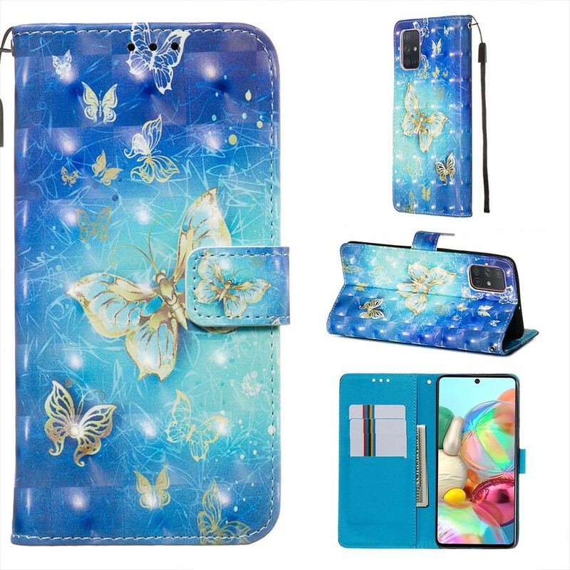 Flip Cover Samsung Galaxy A71 Golden Butterflies Lanyard