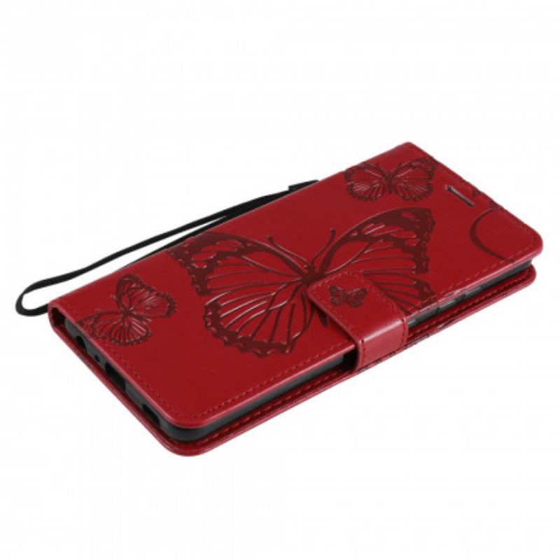 Flip Cover Samsung Galaxy A72 4G / A72 5G Med Snor Kæmpe Sommerfugle Med Rem