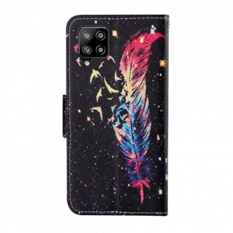 Flip Cover Samsung Galaxy M12 / A12 Med Snor Farverig Fjer Med Rem