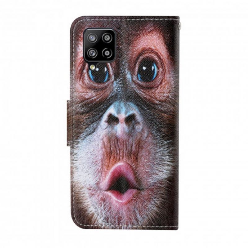 Din Samsung Galaxy A12 / M12 Er Helt Sikker Med Dette Monkey With Strap Imiteret Lædercover.