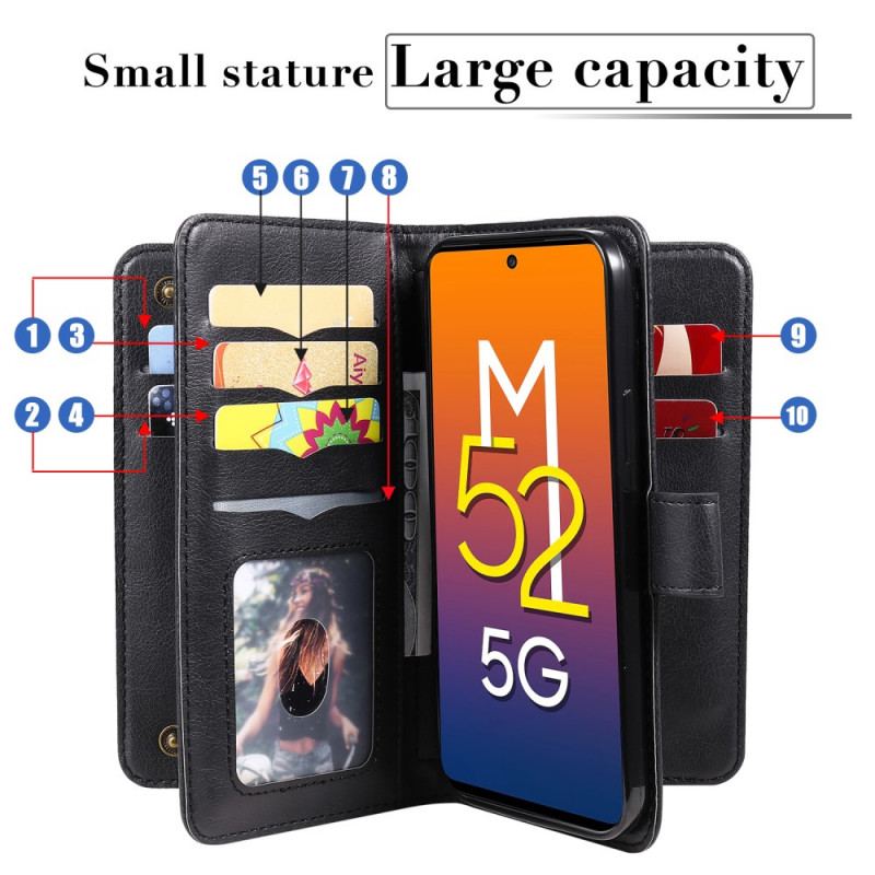 Denne Samsung Galaxy M52 5G Lædercover Og -Pung Beskytter Din Smartphone, Samtidig Med At Den Giver Den Mere Funktionalitet.