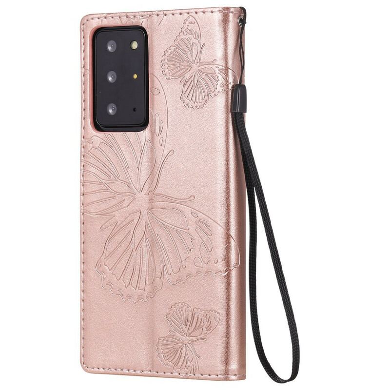 Giant Butterflies Etui I Imiteret Læder Kommer Med En Praktisk Rem Til At Bære Samsung Galaxy Note 20 Ultra.
