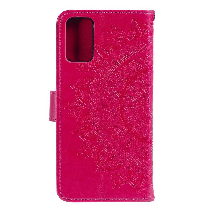 Et Storslået Cover Til Samsung Galaxy S20 Fe Med Et Mandala-Design Af En Sun, Der Også Fungerer Som Pung Og Stativ.
