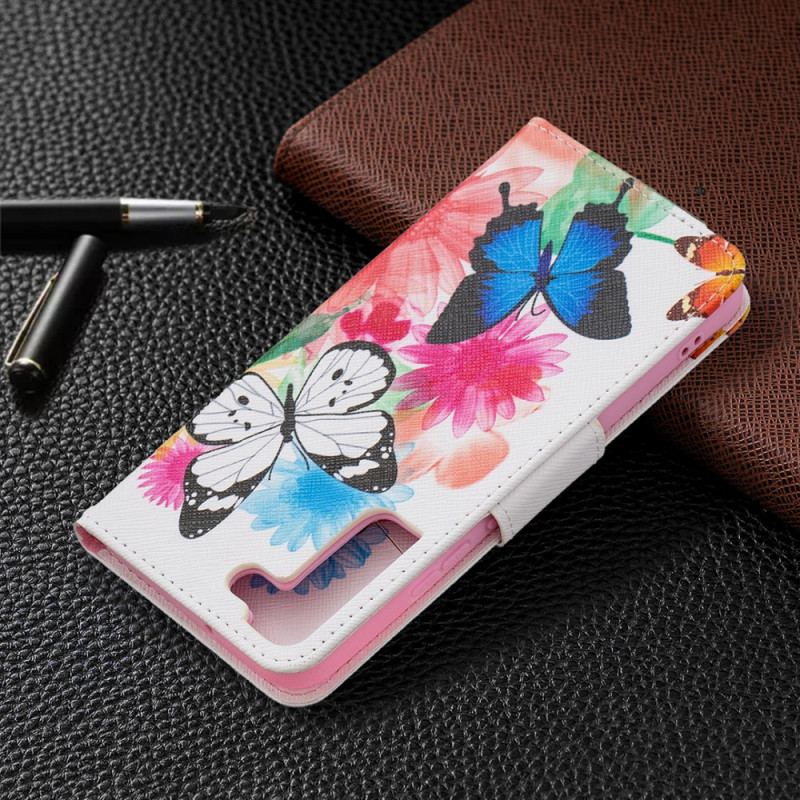 Flip Cover Samsung Galaxy S22 Plus 5G Malede Sommerfugle Og Blomster