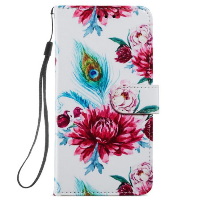 Flip Cover Samsung Galaxy S24 Plus 5g Peacock Blomster Mønster Rem