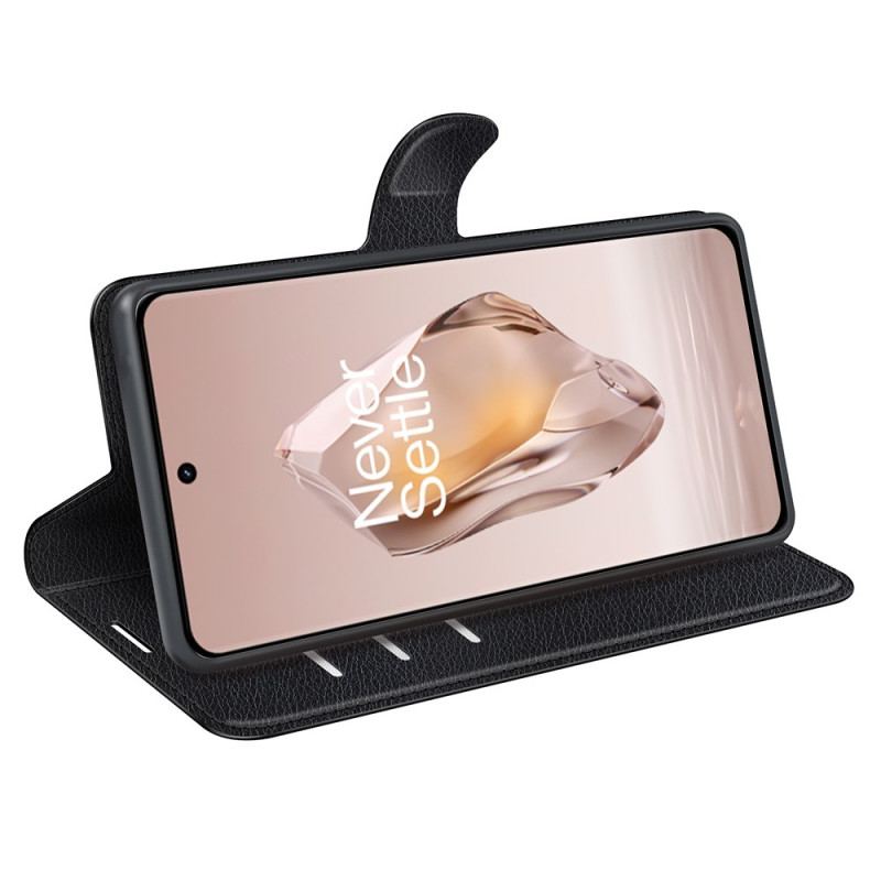 Flip Cover Til Oneplus 12r Klassisk Litchi Imiteret Læder