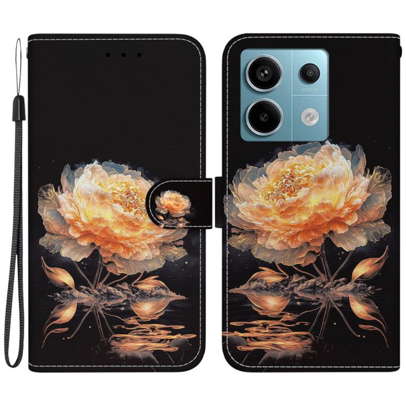 Flip Cover Til Poco X6 5g Gylden Pæon Med Rem