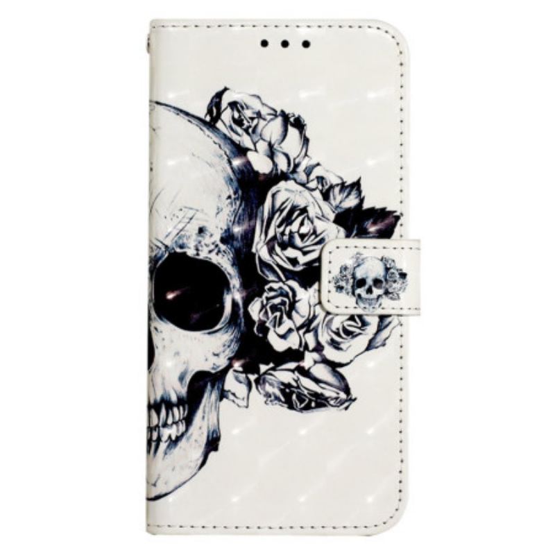 Flip Cover Til Xiaomi Redmi Note 13 4g Blomstret Skalle Med Rem