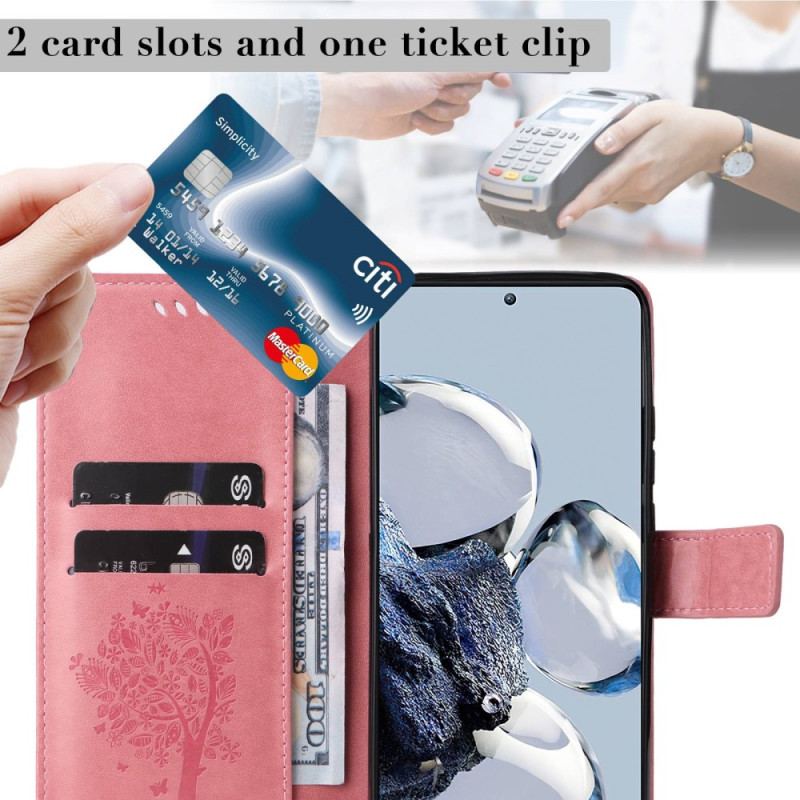 Beskyt Din Xiaomi 12T / 12T Pro Med Denne Kat Under Remmen Træ I Imiteret Lædercover.