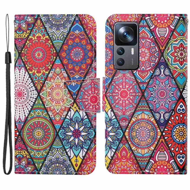 Flip Cover Xiaomi 12T / 12T Pro Patchwork Med Lanyard