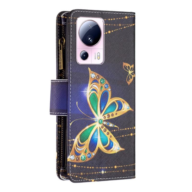 Pungcoveret Med Golden Butterflies Møntpung Sikrer Xiaomi 13 Lite Smukt.