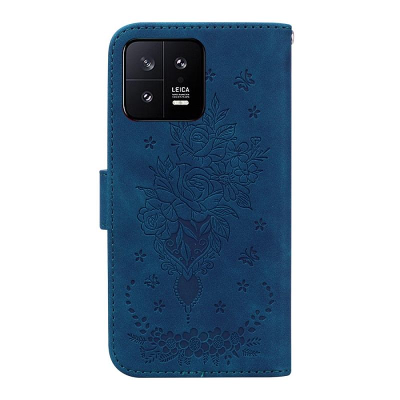 Din Xiaomi 13 Er Smuk Med Dette Cover Dekoreret Med Roser Og Sommerfugle, Som Kommer Med En Rem.