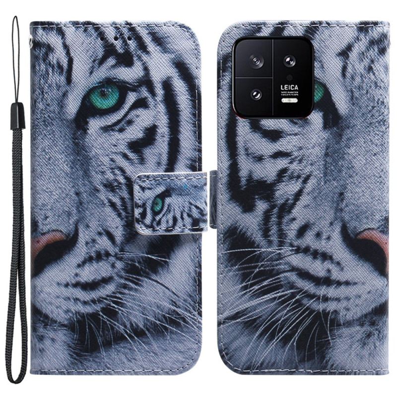 Flip Cover Xiaomi 13 Med Snor Strappy White Tiger